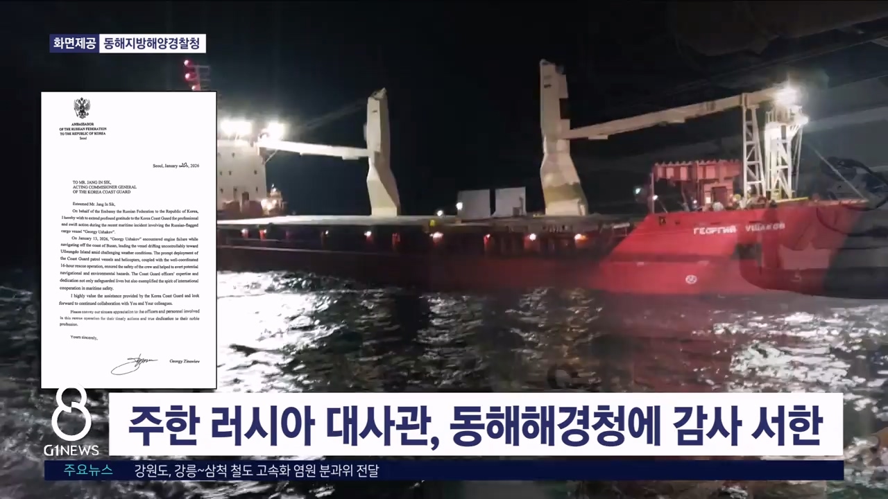 주한 러시아 대사관, 동해해경청에 감사 서한