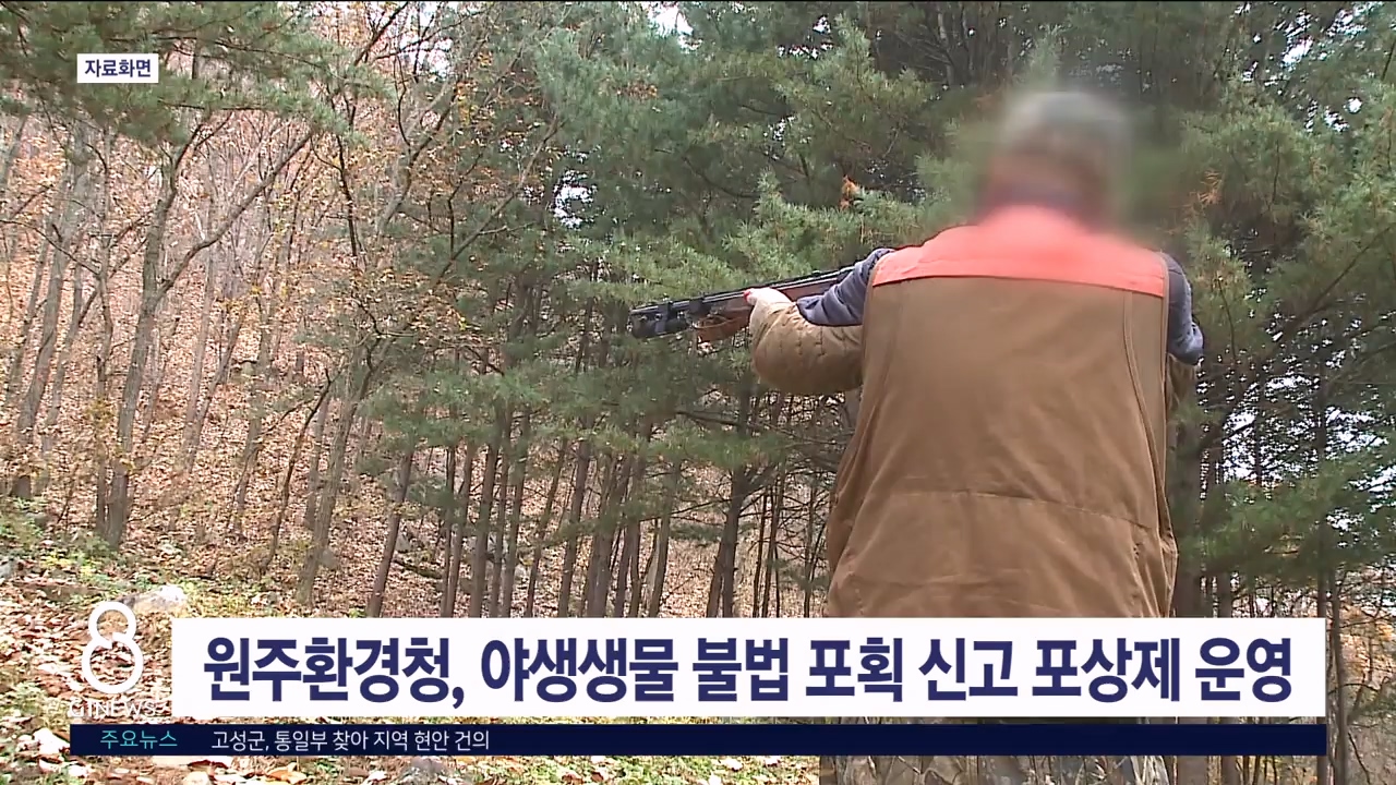 원주지방환경청 야생생물 불법 포획 신고 포상제 운영