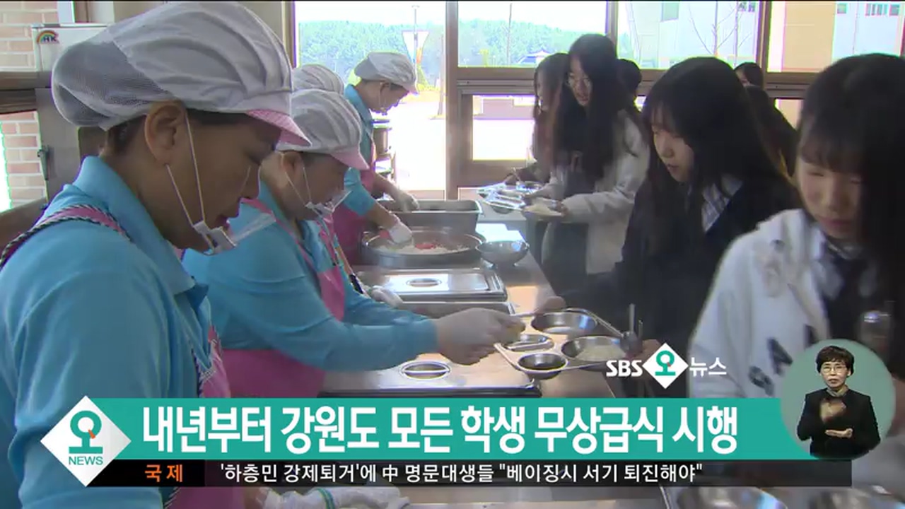 내년부터 강원도 모든 학생 무상급식 [2017-12-14]
