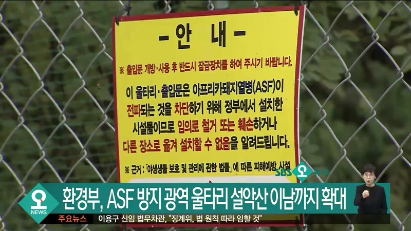 ▶︎ 13ASF 방지 광역울타리, 설악산 이남까지 확대 [2020-12-03]