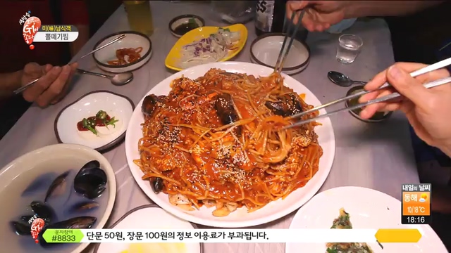 <향긋한 산나물 축제 '2016 청춘양구 곰취축제'> 강원도 봄철 대표 산나물 축제로 명성이 자자한 '양구 곰취축제'! 곰취 채취 프로그램을 비롯해 곰취 떡메체험, 맨손 물고기잡기 등 양구를 홍보하는 다양한 체험부스를 만나볼 수 있다! 곰취축제의 첫 날! 생생한 현장 분위기를 만나보자 * 2016 청춘양구 곰취축제 일정 : 5.20(금)~22(일) 장소 : 양구군 레포츠공원 일원 --------------------------------------------------- <착한 가격! 끝없는 요리~♪ '스페셜 코스 요리'> 끝날 때까지 끝난 게 아니다! 특별한 날 특별한 추억을 만들고 싶을 때 찾게 되는 것이 바로, 코스 요리~! 식객남녀! 첫 번째 대접할 요리는 입 안에서 사르르~ 녹는 초밥이 코스로 기다리는 '스페셜 초밥코스'! 그리고 이에 맞서는 웰빙 음식의 선두주자 오리 고기뿐만 아니라 소고기, 돼지고기, 해산물 등을 맛볼 수 있는 '오리 코스요리'! 먹으면 먹을수록 즐거워지는 스페셜한 코스요리 세계로 떠나보자. ① 오리 코스요리 <착한오리> 주 소 : 강원도 원주시 개운동 203-72 연락처 : 033)764-1133 ② 스페셜 초밥 코스 <마코토> 주 소 : 강원도 춘천시 퇴계동 1082 연락처 : 033)261-4237 --------------------------------------------------- < 열정을 뛰어넘다! '제10회 전국장애학생체육대회'> 함께 뛰는 땀방울! 자신감의 꽃망울! 전국 장애학생들의 스포츠 대축제 '제10회 전국장애학생체육대회' 장애라는 한계를 넘어, 구슬땀을 흘리며 자신의 목표를 향해 나아가는 자랑스러운 선수들. 그들의 열정이 가득 현장, 만나보자. * 제45회 전국소년체육대회 일정 : 5.28(토)~31(화) 장소 : 강릉종합운동장 등 47개 경기장 --------------------------------------------------- <동해안 최북단, 작은 포구 '고성군 거진읍 반암리'> 5월 명주조개 수확이 한창인 고성군 거진읍 반암리! 이번에는 김PD가 조개 수확에 발벗고 나섰다! 그리고, 유난히 어르신들 표정이 밝은 반암리는 전국에서도 소문난 춤꾼들이 많다고 하는데! 고성군 거진읍 반암리의 매력에 흠뻑! 빠져보자.