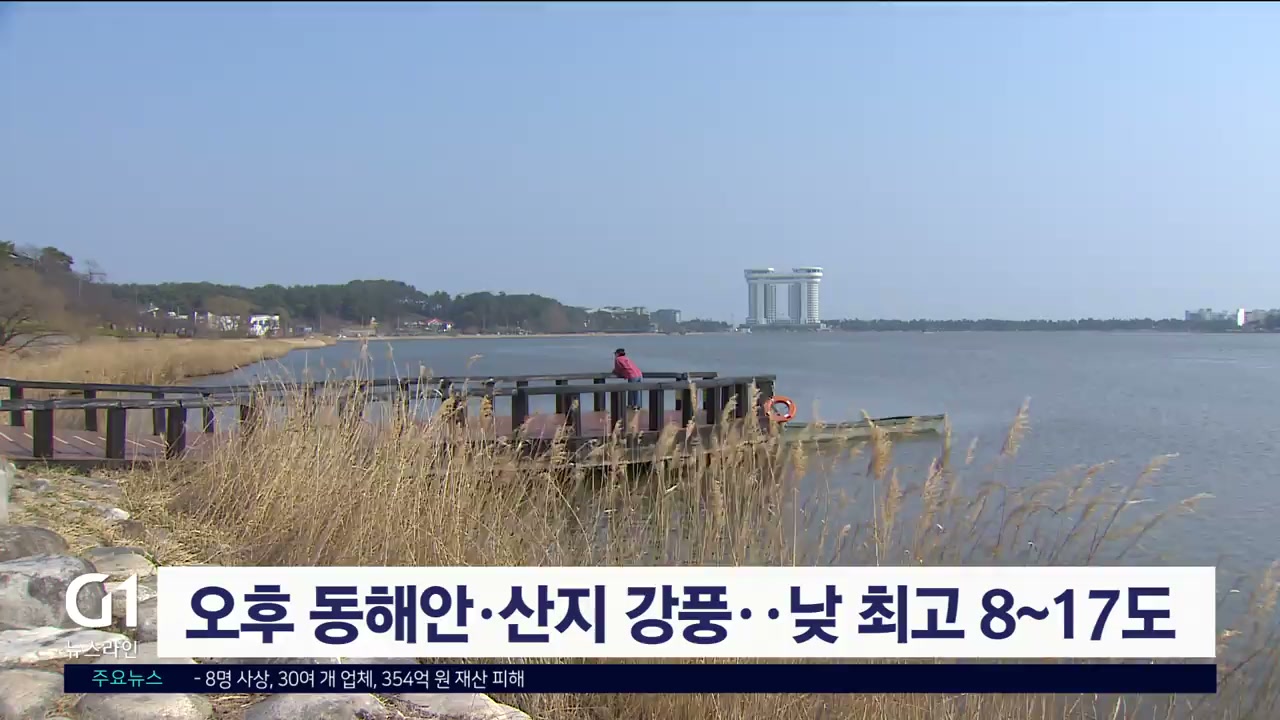 오늘(20일) 강원자치도는 대체로 맑겠으며, 오후부터 동해안과 산지를 중심으로 강풍이 불겠습니다.