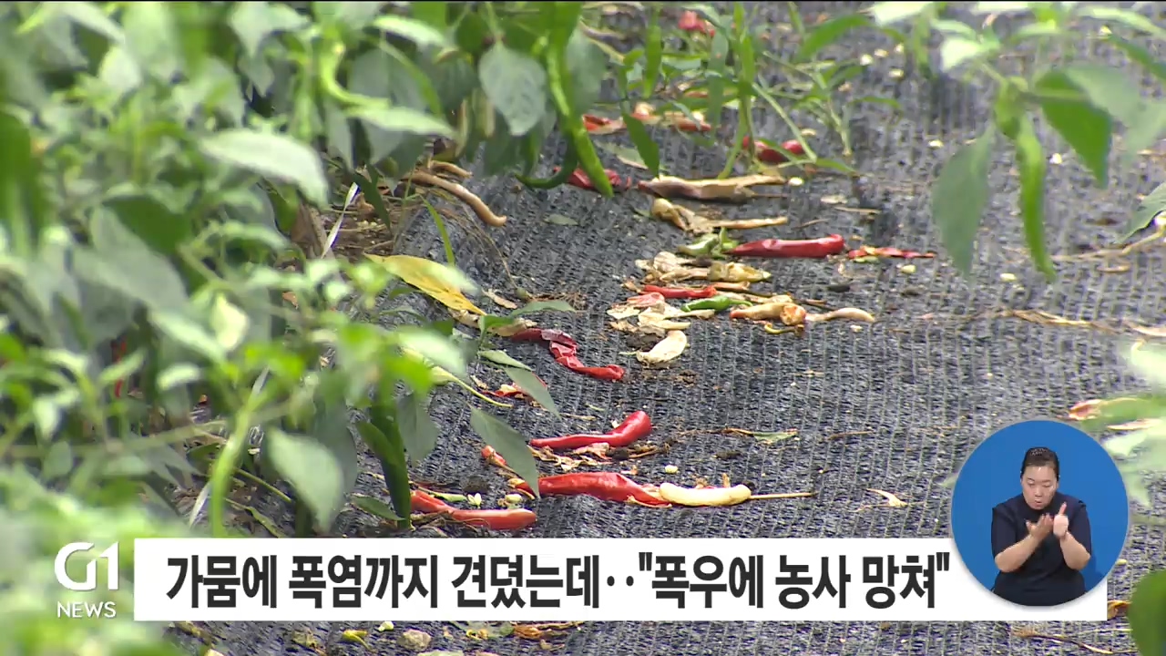 "오이는 뭐 심고서는 따보지도 못하고 다 망가졌고요. 폭염에다가 비가 며칠을 왔잖아요. 일주일을 왔잖아요. 그러니까 시들시들하면서 (농작물이) 다 망가지니까.."