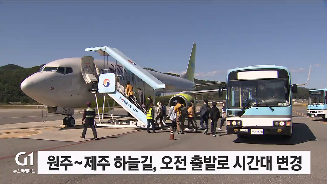 원주에서 제주 가는 하늘길이 오전 시간대로 편성돼 이용객의 불편이 줄어들 전망입니다.