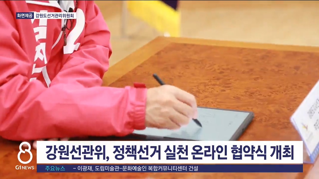 강원도선거관리위원회가 유튜브 채널을 이용해 '메니페스토 정책선거실천 협약식'을 열었습니다.
