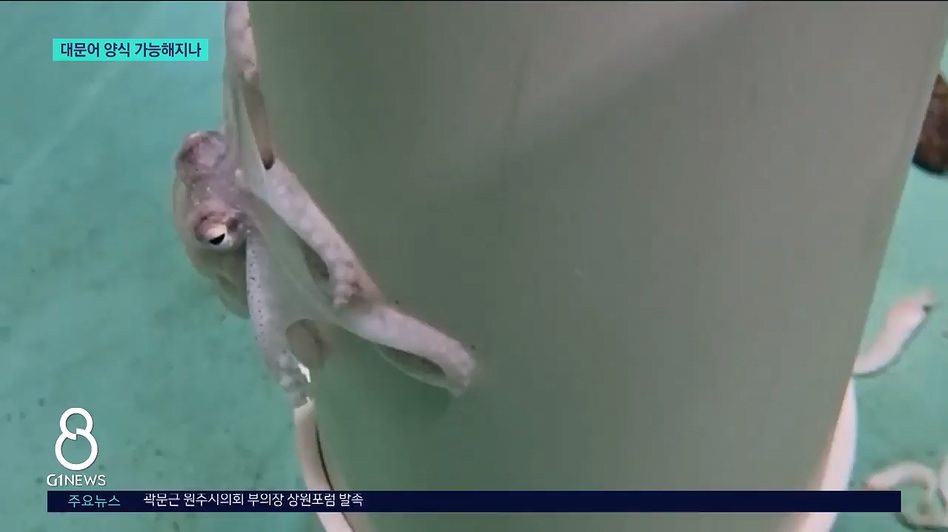 국내 연구진이 대문어를 1년 넘게 사육하는데 성공해 양식 가능성에 대한 기대가 커지고 있습니다.