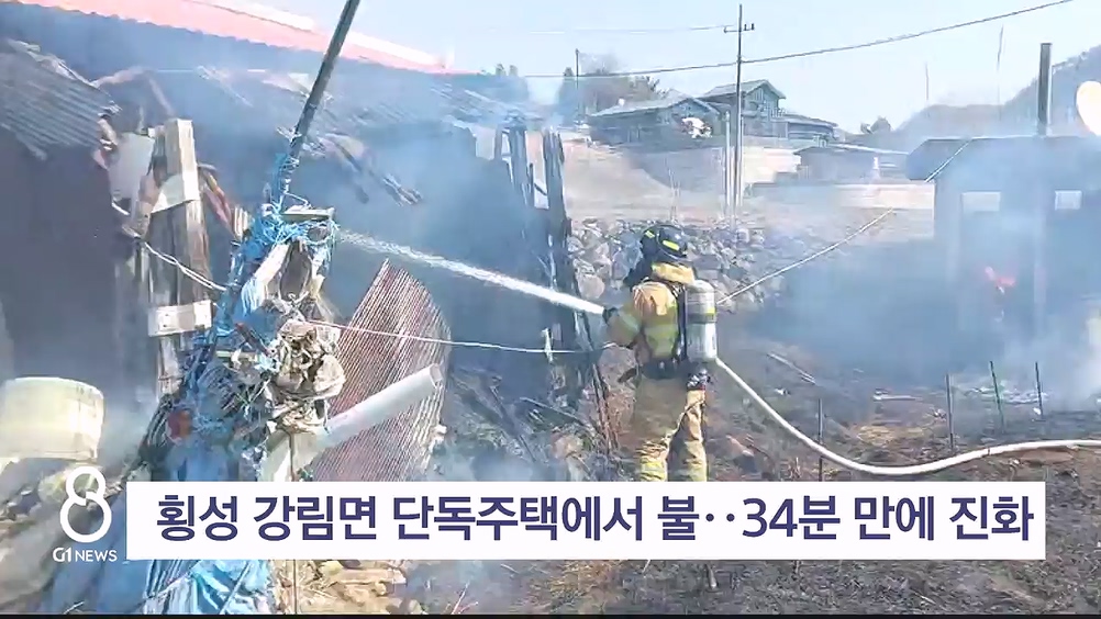 오늘(22일) 오전 10시 36분쯤 횡성 강림면의 한 단독주택에서 불이 나 34분 만에 꺼졌습니다.