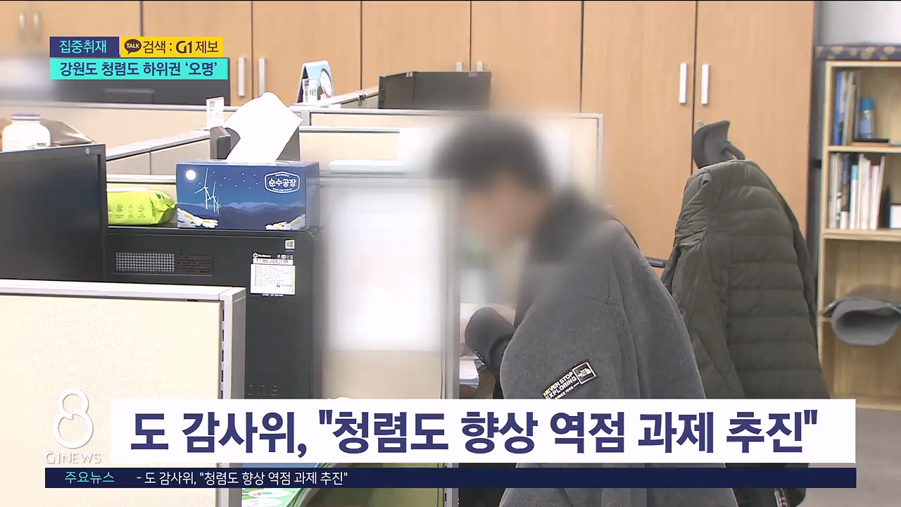 /지난해 강원자치도는 종합 청렴도 1에서 5등급 중 4등급을 받아 전국 17개 시도 중 꼴찌에서 두 번째 였습니다./