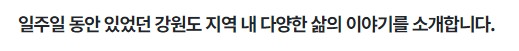 일주일 동안 있었던 강원특별자치도 지역 내 다양한 삶의 이야기를 소개합니다