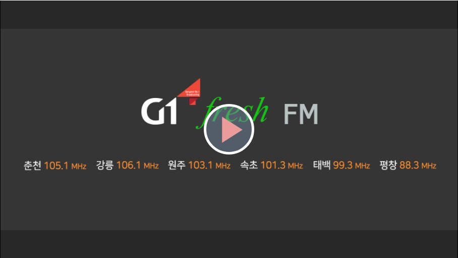 G1방송 홈페이지에 들어가보니까 On Air에 들어가보니까 FM 온에어에 들어가보니까 동영상 재생 사진에 G1 fresh FM 주파수에 평창 방림 90.5MHz를 입력 하지 않으셨습니다.