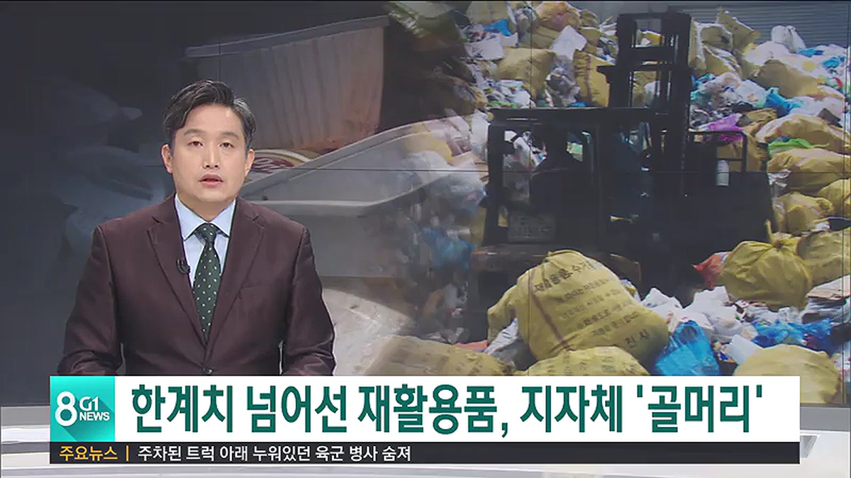 "끝 간 데 없이 늘어나는 재활용 쓰레기를 감당하기 위해, 다같이 줄이고 제대로 버리는 노력이 절실한 때입니다. G1뉴스 원석진입니다."