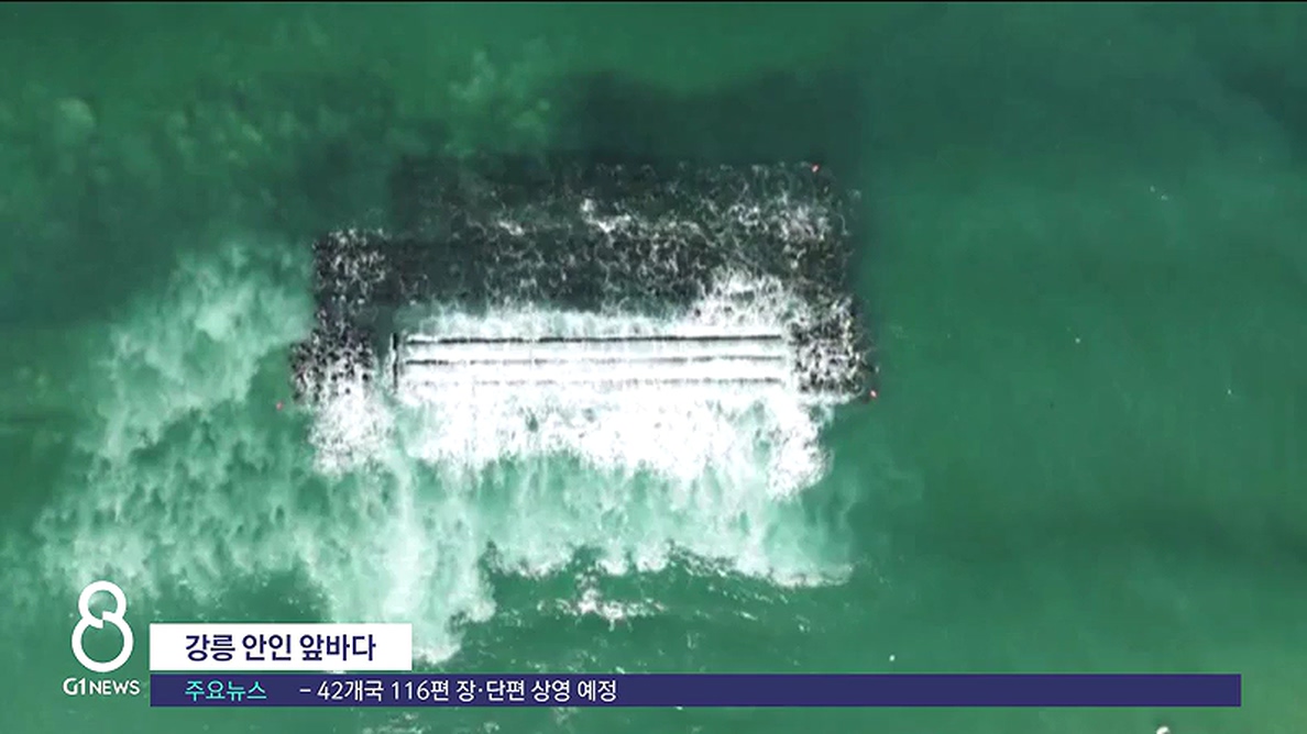 강릉 앞바다에 설치중인 수중 방파제, 잠제의 모습입니다.