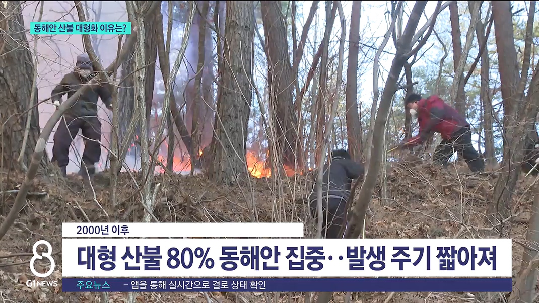 "특히, 2000년 이후 발생한 대형 산불 10건 중 8건이 강원과 경북 등 동해안에 집중됐습니다."