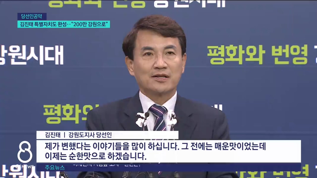 먼저 첫 순서로 도민들로부터 첫 강원특별자치도지사로 선택받은 김진태 당선인입니다.