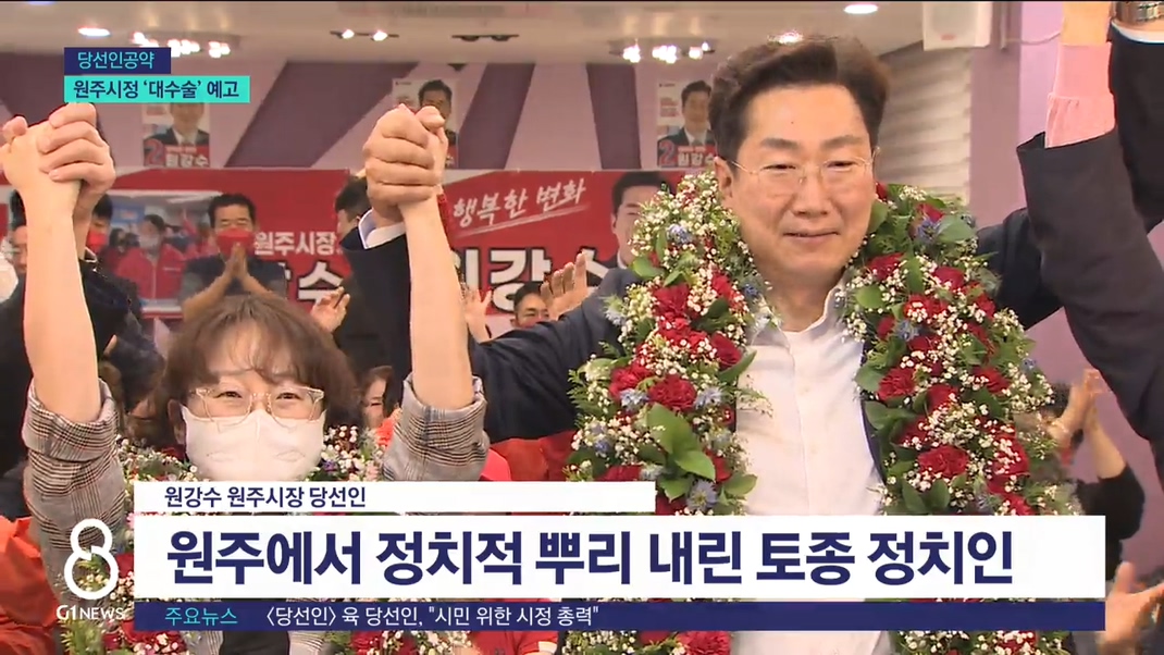 민선 8기 원주 시정을 이끌 시장으로 원주시민들은 원강수 당선인을 선택했습니다.