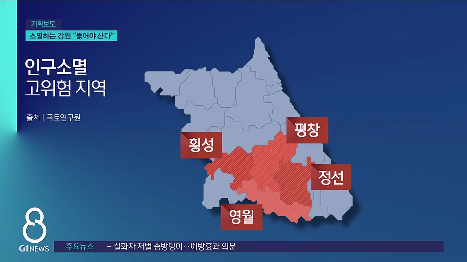춘천과 원주를 제외한 16개 시·군이 소멸 위험군으로 분류됐습니다.