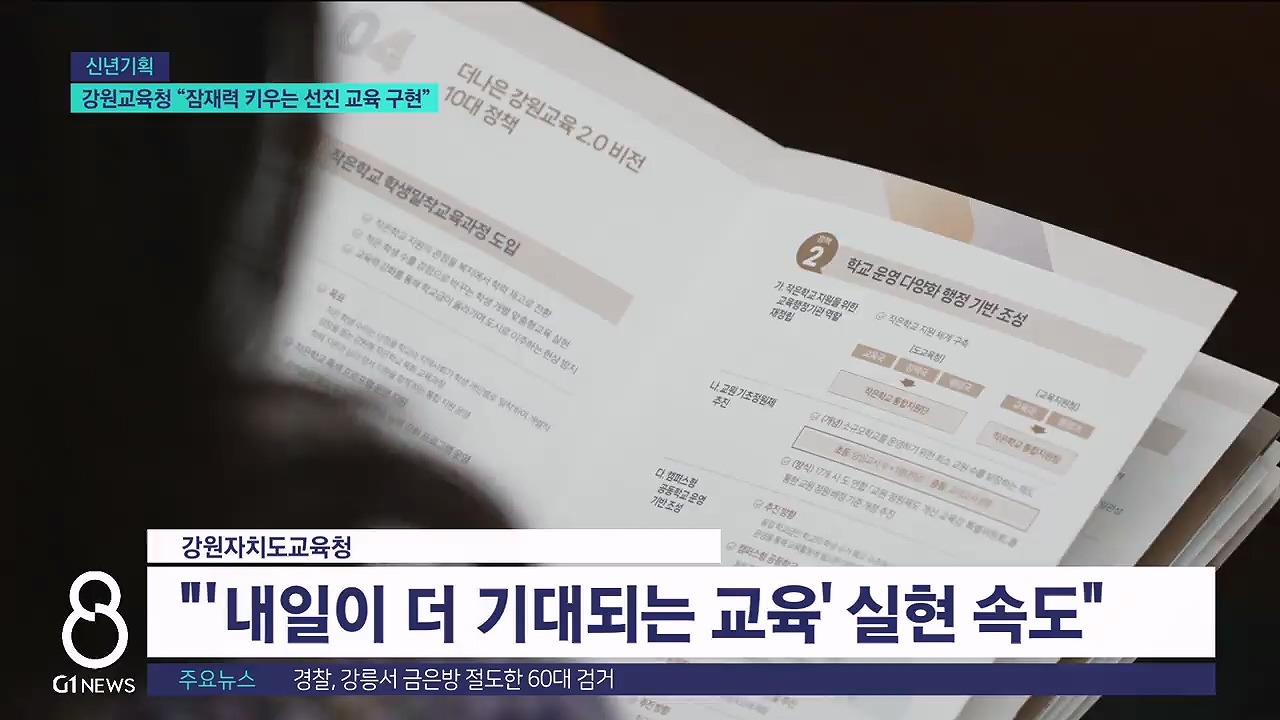 "'내일이 더 기대되는 교육' 실현에 나선 강원자치도교육청. 다양한 교육 정책이 학교 현장에서 구체적인 성과를 낼 수 있을지 주목됩니다. G1뉴스 박명원입니다."