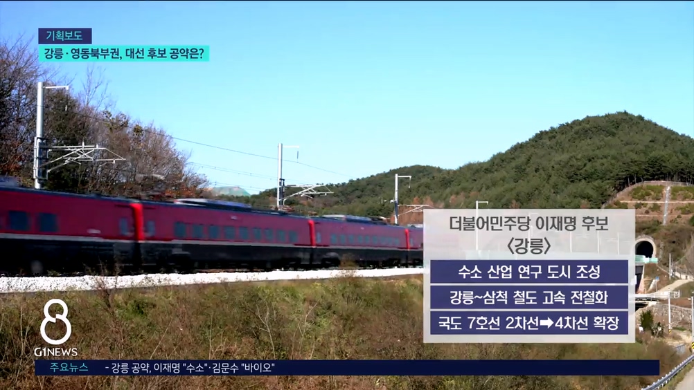 강릉~삼척 철도의 고속 전철화와 국도 7호선 중 유일한 2차선 구간의 4차선 확장도 주요 공약에 담겼습니다.