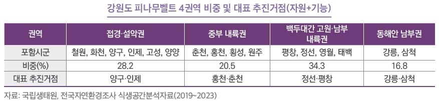 강원자치도는 피나무 분포와 밀도가 전국 최고 수준인 점을 주목해야 한다.