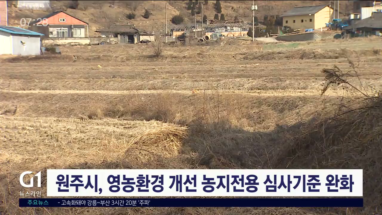 원주시는 농업인 영농환경 개선을 위해 농지전용 심사기준을 완화합니다.