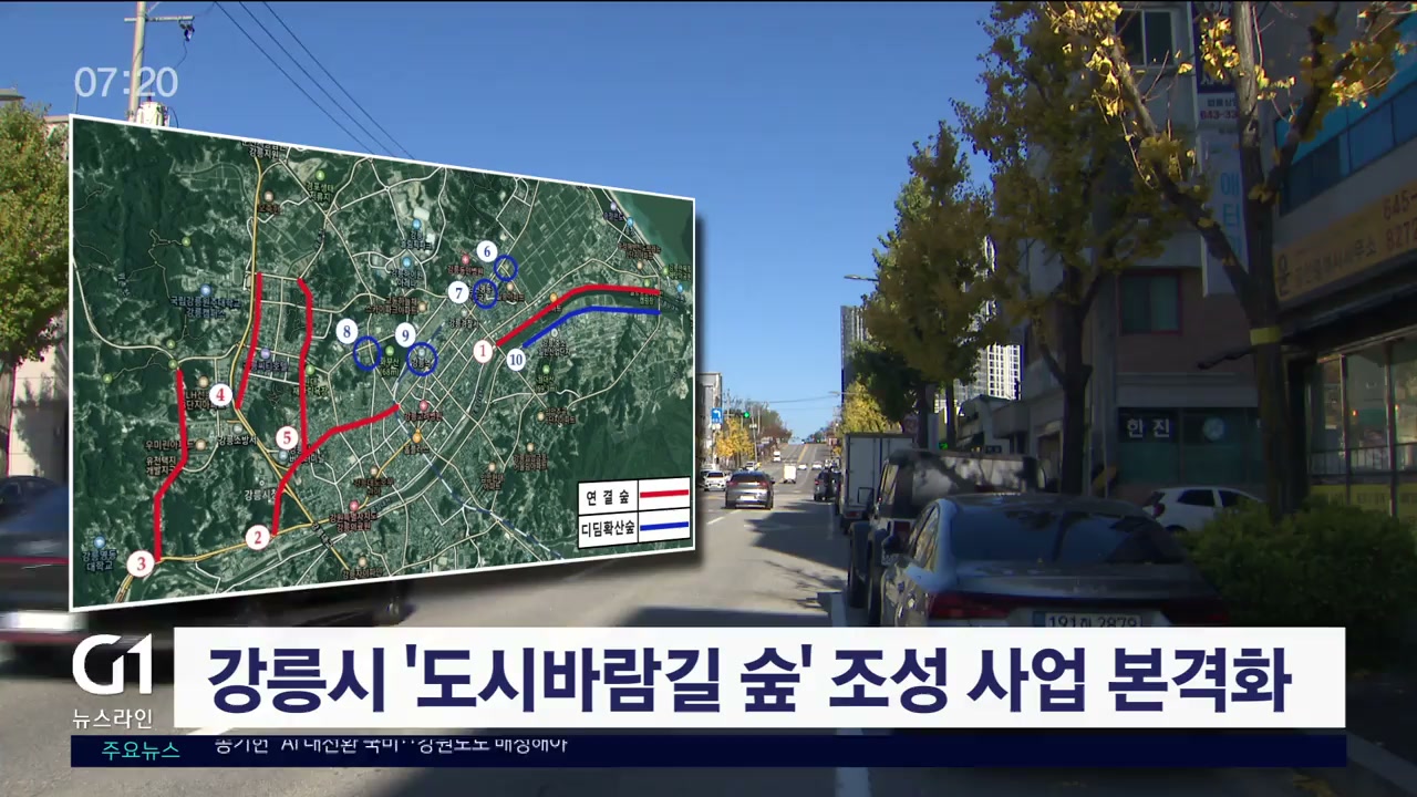 강릉시는 오는 2029년까지 사업비 200억 원을 투입해 강릉대로를 비롯한 도심 10곳, 19.8km 일대에 연결 숲과 디딤확산 숲을 조성한다고 밝혔습니다.