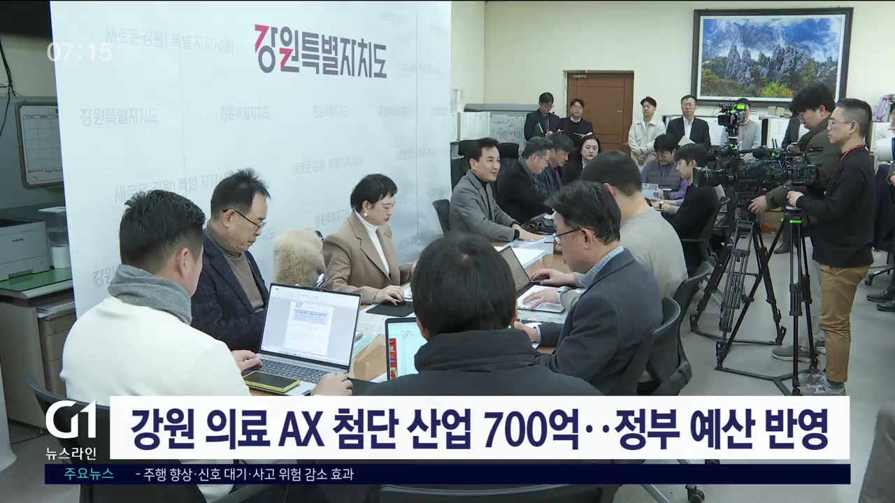 강원자치도는 '강원 의료 AX 산업 실증 허브 조성' 350억 원과 '디지털 헬스 케어 기반 AI 융합 혁신 교육 허브 조성' 사업비 350억 원이 각각 내년도 정부 예산에 반영됐다고 밝혔습니다.