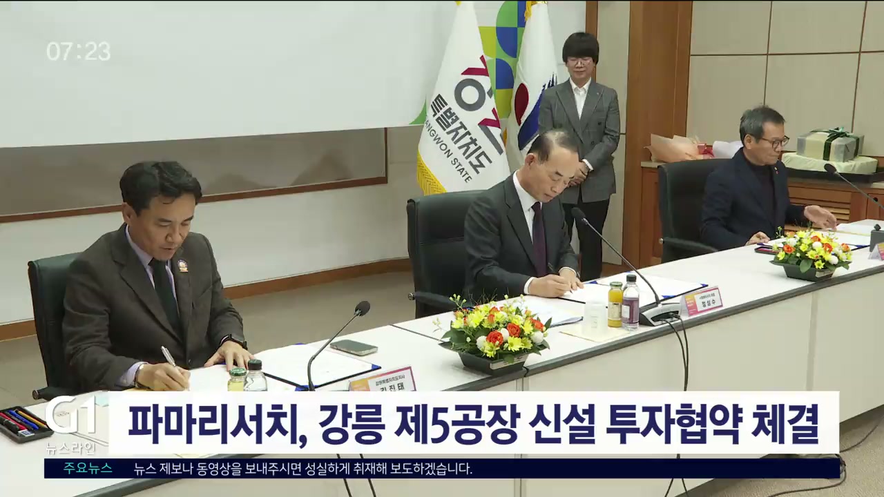 이번 협약을 통해 파마리서치는 약 1,000억 원 이상을 투입해 강릉시 사천면 방동리 일대 3만여㎡ 부지에 오는 2027년 완공을 목표로 제5공장 신설을 추진합니다.