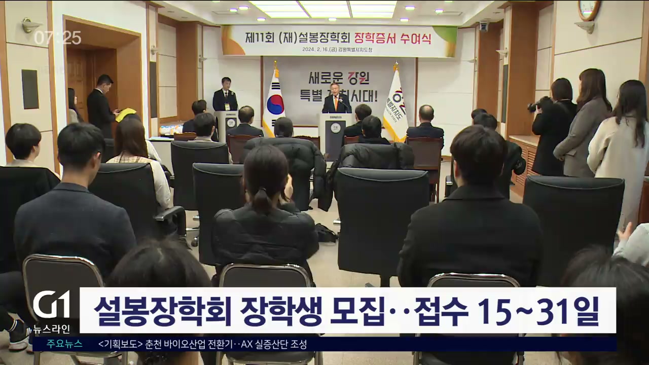 신청 접수는 오늘(15일)부터 이달말까지로, 설봉장학회 홈페이지에서 서류와 방법 등을 확인할 수 있습니다.