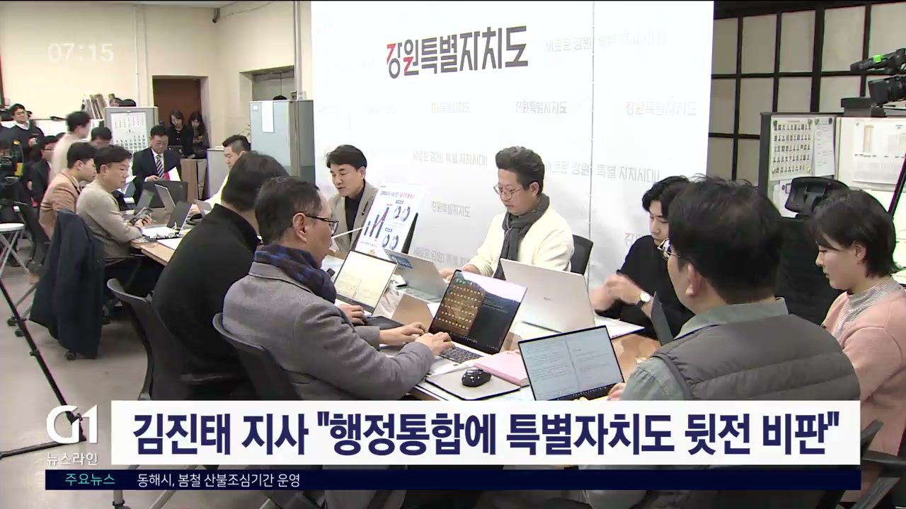 김 지사는 어제(19일) 정례 기자간담회에서 광주·전남, 대전·충남 통합특별시 논의에만 속도를 내고, 강원특별법 3차 개정안 등 '3특'은 사실상 방치되고 있다고 비판했습니다.