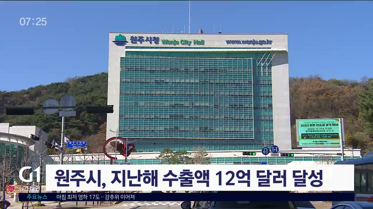 원주시가 지난해 연간 수출액 12억 달러를 달성했습니다.