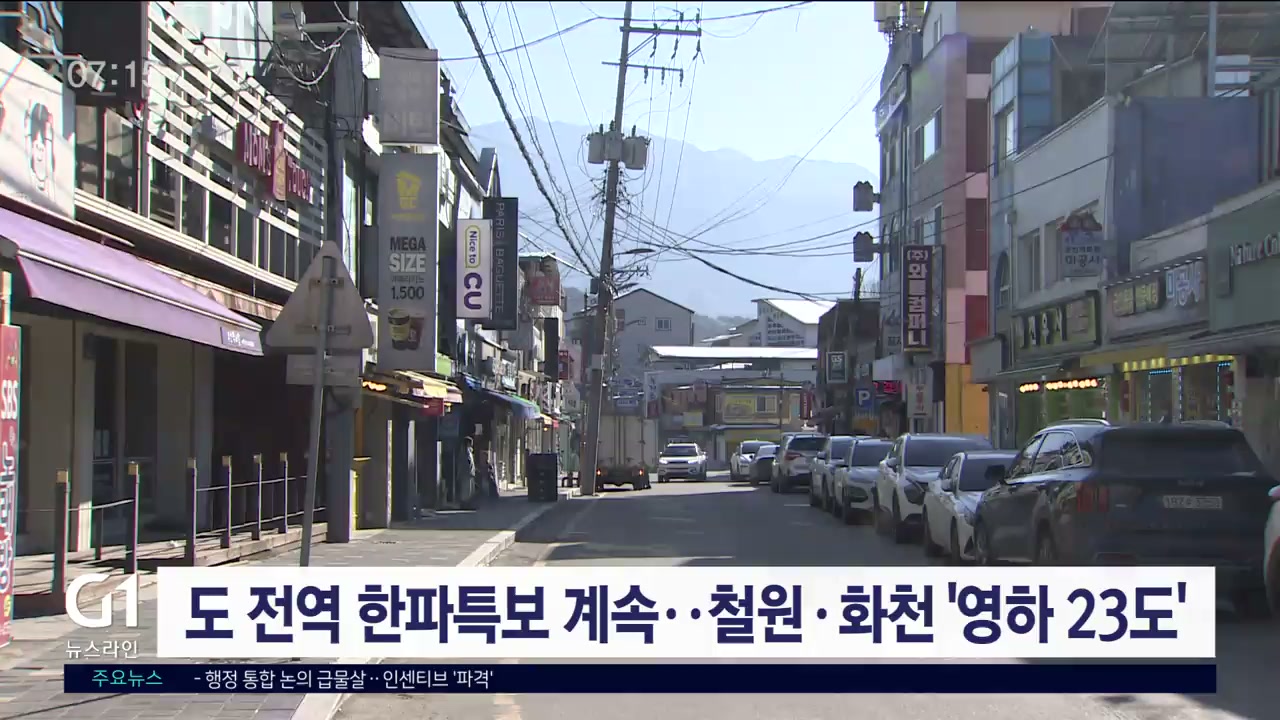 오전 6시 기준 철원과 화천 영하 23도, 양구 영하 21도, 평창과 홍천 영하 20도 등을 기록하고 있습니다.