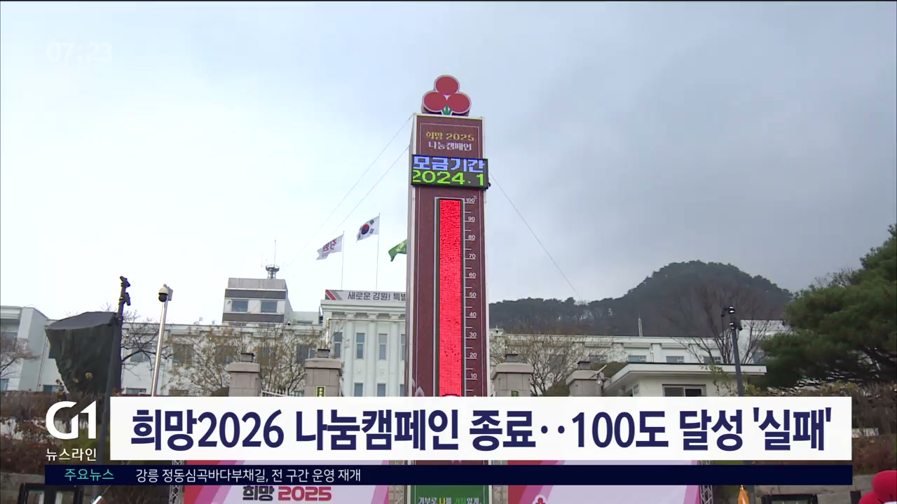 강원사회복지공동모금회는 '희망2026 나눔캠페인'을 통해 모금액 잠정 79억 3천만 원, 사랑의 온도탑 나눔온도 93도로 캠페인을 마무리했다고 밝혔습니다.