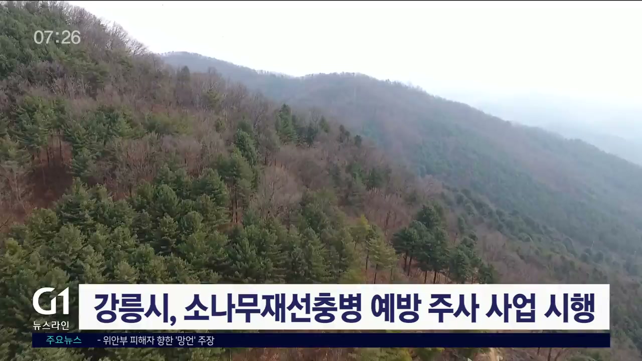 강릉시가 소나무재선충병 확산을 방지하기 위한 예방 나무주사 사업을 벌입니다.