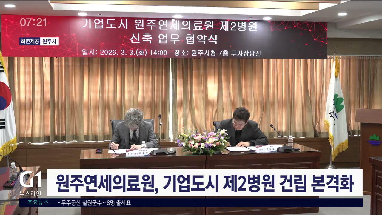 원주시와 원주연세의료원은 어제(3일) 시청에서 업무협약을 맺고, 병원 건립을 위한 협력 체계를 구축을 논의했습니다.