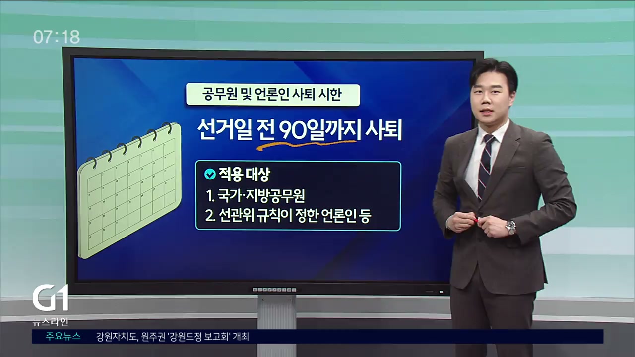 /한편 공무원과 선관위 규칙에서 정한 언론인 등은 선거일 전 90일까지 사퇴해야 합니다.