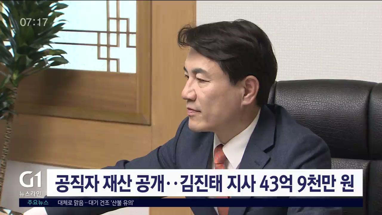 강원자치도가 공개한 ‘2026년 공직자 정기 재산 변동 사항’에 따르면, 김진태 도지사는 급여에 따른 수입 증가 등으로 작년 보다 3억 9천여만 원 증가한 43억 9천여만 원을 신고했습니다.