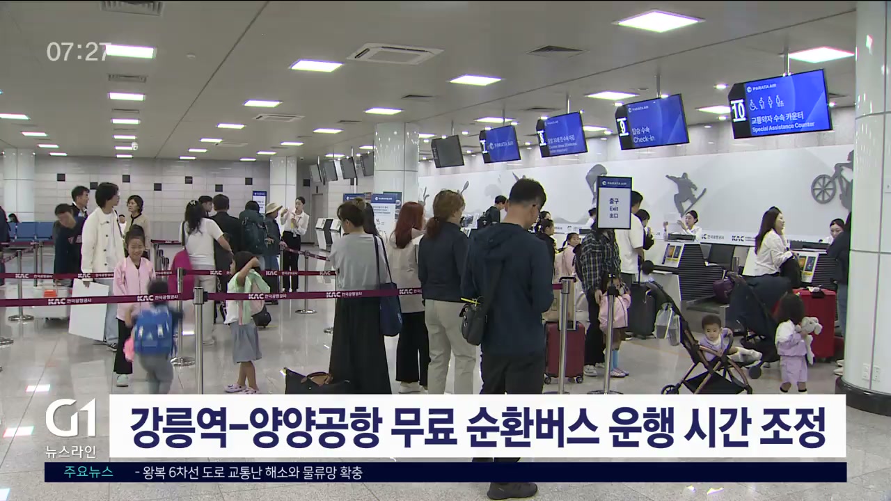 강릉시가 강릉역과 양양국제공항을 연결하는 무료 순환버스 운행 시간을 정기노선 항공기의 출발·도착 시간에 맞춰 조정합니다.