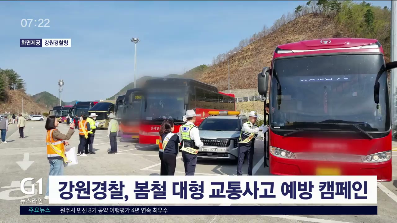 강원경찰청 고속도로순찰대가 봄철 대형버스 운행 증가가 예상됨에 따라 유관기관 합동 교통안전 캠페인을 벌였습니다.