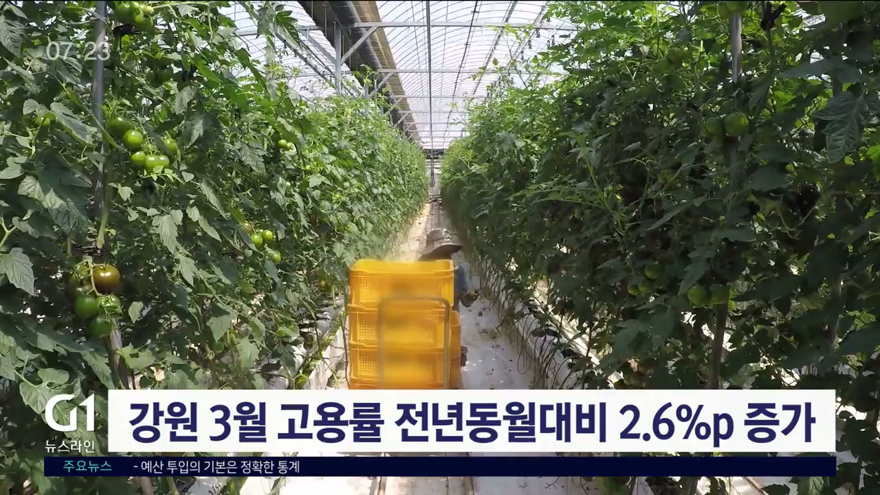 강원지방 데이터지청은 지난달 강원도 고용률이 64.9%로 전년동월대비 2.6%p 상승했다고 밝혔습니다.