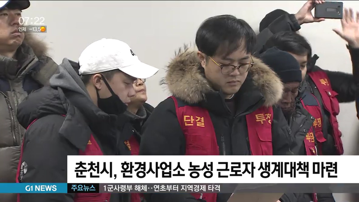 춘천시, 환경사업소 농성 근로자 생계대책 마련