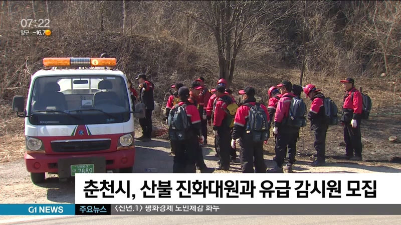 춘천시, 전문 예방 진화대원.산불 유급 감시원 모집
