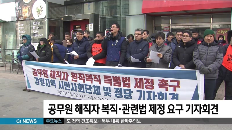 전국공무원노동조합 강원지역본부는 어제(9일) 더불어민주당 강원도당 앞에서 기자회견을 열고, 노조 활동을 이유로 해직된 공무원들에 대한 복직을 요구했습니다.
