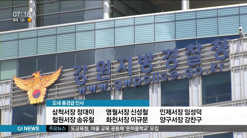 또, 강원청 보안과장에는 이화선 삼척서장이, 강원청 112종합상황실장에는 윤휘영 철원서장, 강원청 생활안전과장에는 최성환 서울 용산서장, 강원청 경비교통과장에는 한상갑 충남청 치안지도관이 각각 임명됐습니다.
