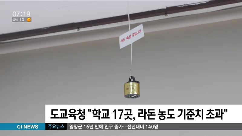 강원도교육청이 지난해 도내 전체 학교 930곳의 라돈 농도를 전수 조사한 결과, 17곳이 라돈 농도 기준치를 초과하는 것으로 나타났습니다.