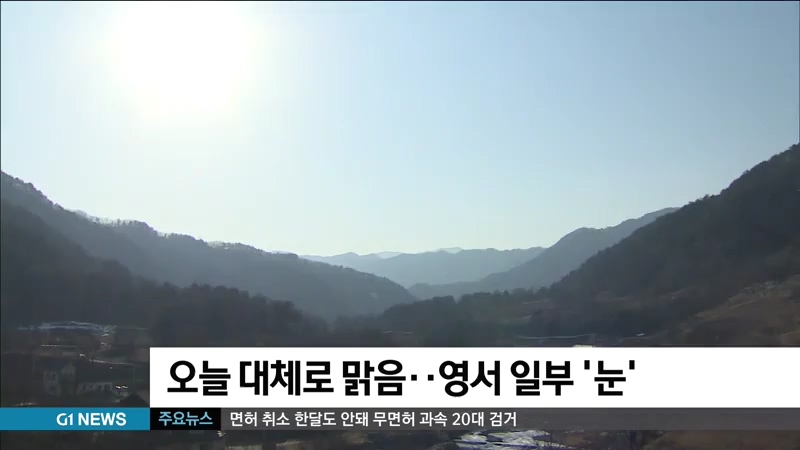 오늘 강원지역은 대체로 맑은 가운데, 밤부터 영서지역을 중심으로 눈이 오는 곳이 있겠습니다.