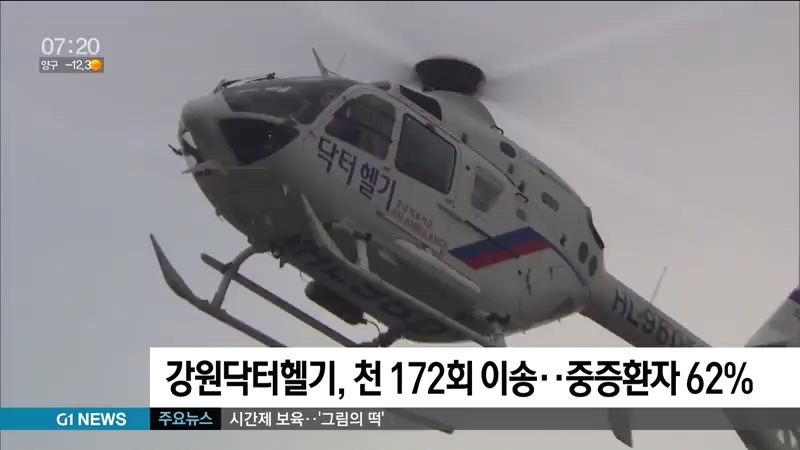 강원닥터헬기, 천 172회 이송..중증환자 62%
