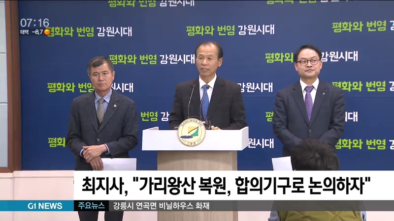 최문순 도지사는 어제 긴급 브리핑을 갖고, "올림픽 시설 관리 부처인 문화체육관광부와 가리왕산 관리 주체인 산림청, 그리고 환경부와 환경단체, 강원도와 정선군, 경기단체 대표 등 관련 주체가 모두 참여하는 사회적 합의기구 구성을 제안한다"고 밝혔습니다.