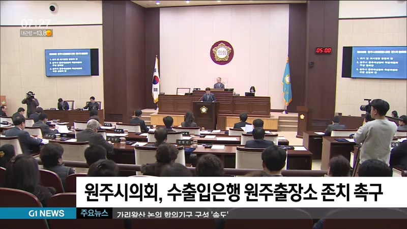 원주시의회, 수출입은행 원주출장소 존치 촉구