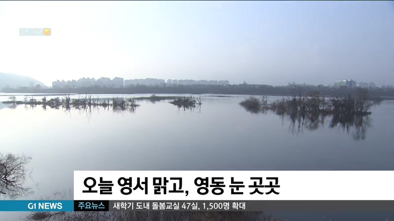 낮 최고기온은 영서지역이 영하 1도에서 영상 5도, 영동지역이 5도에서 7도의 분포로 어제보다 낮겠습니다.