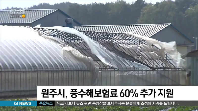 원주시는 내일부터 풍수해보험의 본인 부담금을 60% 추가로 지원해, 가입자가 총 보험료의 82%까지 지원받도록 했습니다.